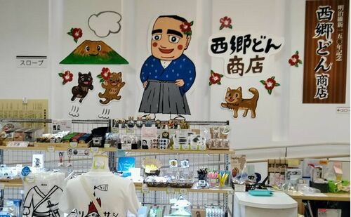 鹿児島が誇る老舗デパートといえば山形屋!!(ヤマカタヤと読みます) その1号館1階にオープンしている「西郷どん商店」の看板を描かせてもらっています。夏バーションでハイビスカスを飾りつけ。 観光客より地元の人が買いに来るこのお店。店内では商品…